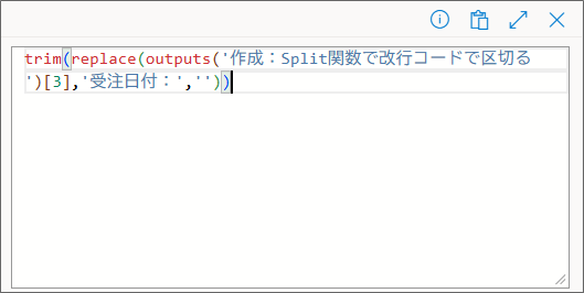 trim(replace(outputs('作成:Split関数で改行コードで区切る'),'受注日付:',''))