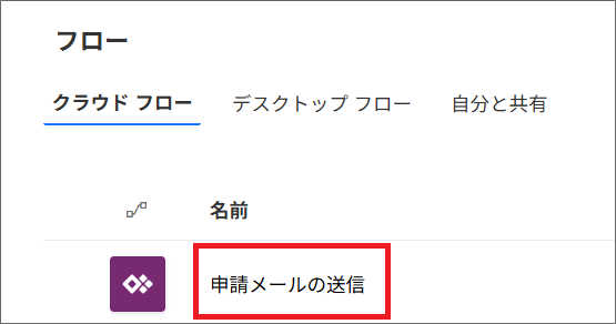 1.フローの一覧で、対象のフローを選択する。