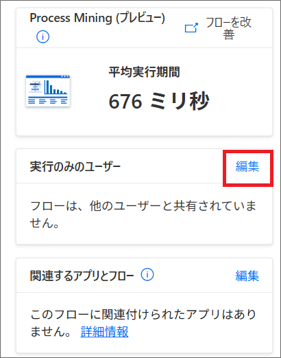 「実行専用ユーザー」の設定場所は、フロー概要画面で以下の手順で行います。