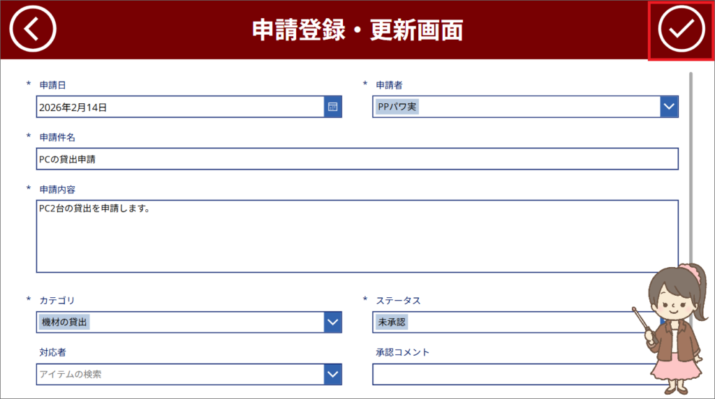 次に、ミムチが同じ申請アプリを操作してみます。