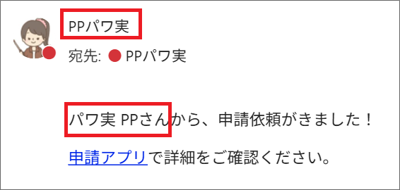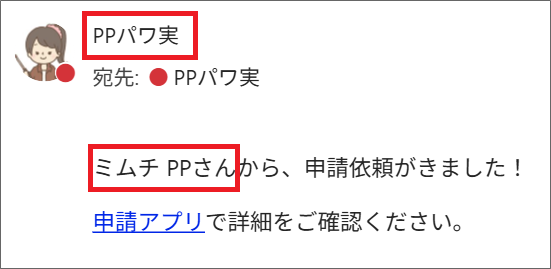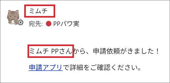 申請アプリで、新規申請を登録した場合、登録したユーザーを自動通知メールの送信者にしたいですぞ…