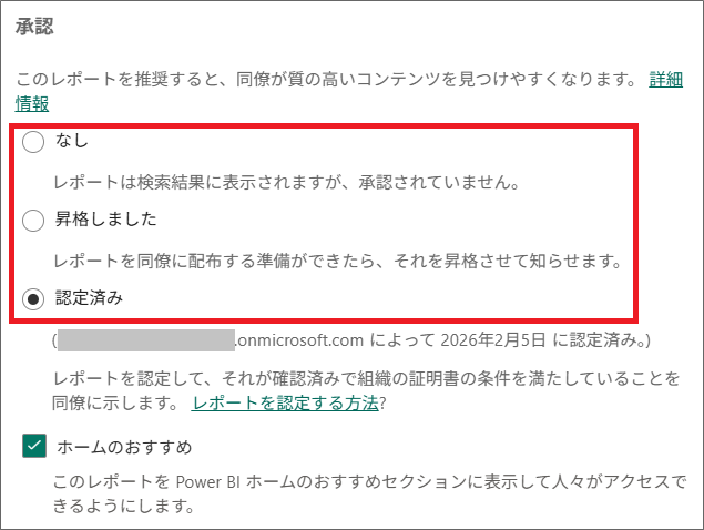 このように、Power BIでレポートやセマンティックモデルで、昇格・認定済みの設定をすることができました。